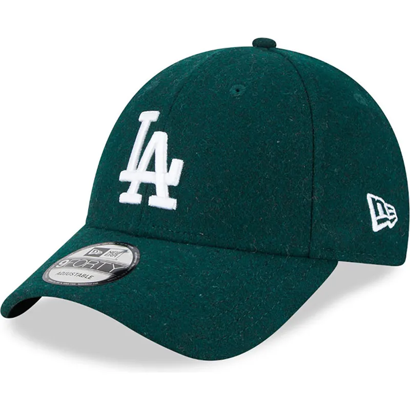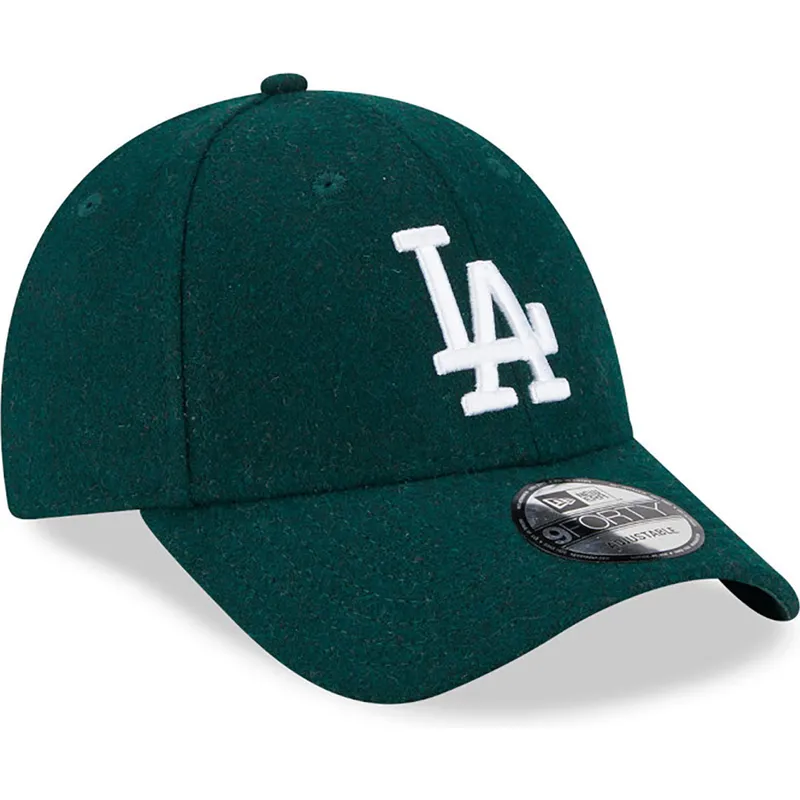 Zielona, regulowana czapka z daszkiem 9FORTY Essential Melton Wool Los Angeles Dodgers MLB od New Era