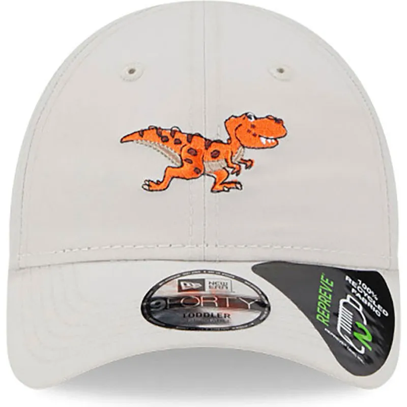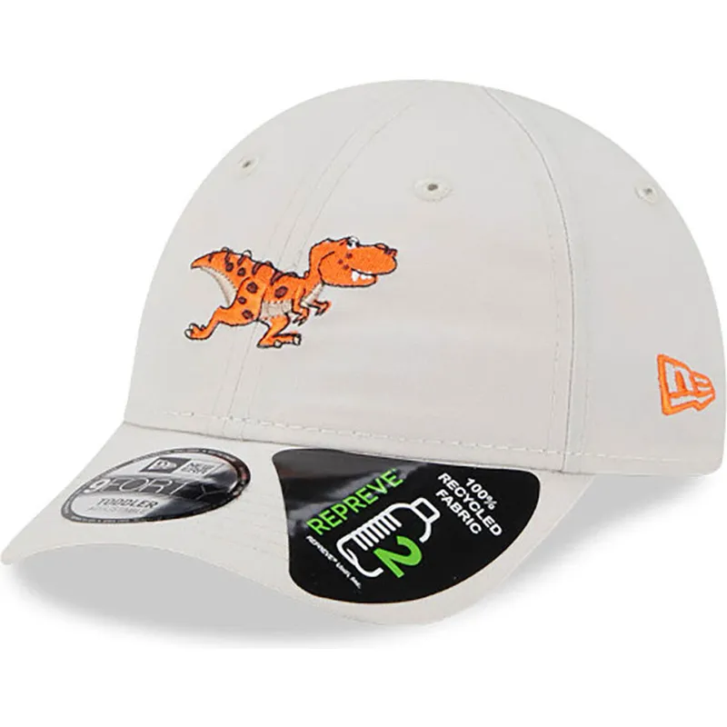 Beżowa czapka z zakrzywionym daszkiem dla dzieci z regulacją, z motywem dinozaura 9FORTY REPREVE od New Era