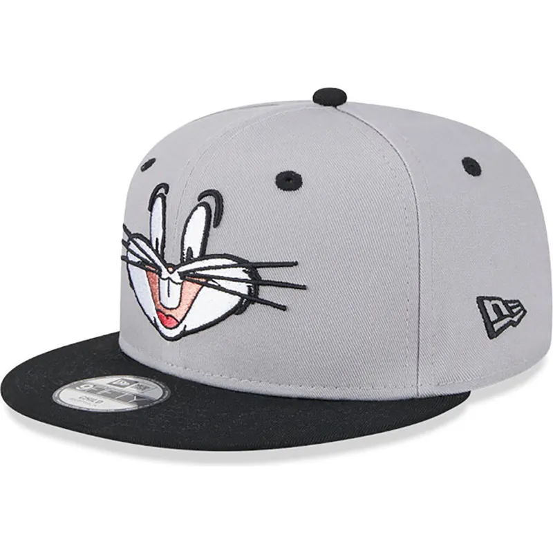 Szara i czarna czapka z płaskim daszkiem snapback 9FIFTY z Królikiem Bugsem Looney Tunes od New Era
