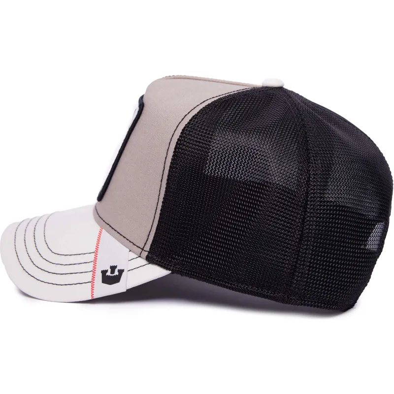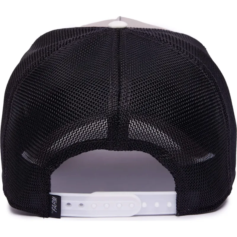 Szaro-czarna czapka typu trucker Goorin Bros. Tiger MV Stripes The Farm MVP to obowiązkowy element garderoby miłośników oryginalnych akcesoriów. Dzięki charakterystycznemu logo marki z tyłu czapka ta jest prawdziwym symbolem stylu i wyrafinowania. Kontrast pomiędzy szarością i czernią nadaje mu nowoczesny i elegancki charakter, idealny na każdą okazję.
