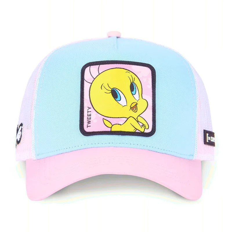 Niebiesko-biało-różowa czapka typu trucker Tweety LOO8 TWE1 marki Capslab to niezbędny dodatek dla każdego dorosłego człowieka, który chce wyróżniać się stylem i oryginalnością. Dzięki uniseksowemu designowi czapka ta idealnie dopasowuje się do każdego stroju, zarówno swobodnego, jak i sportowego. Zapięcie na zatrzask pozwala na łatwe dopasowanie go do idealnego dopasowania w każdych okolicznościach.