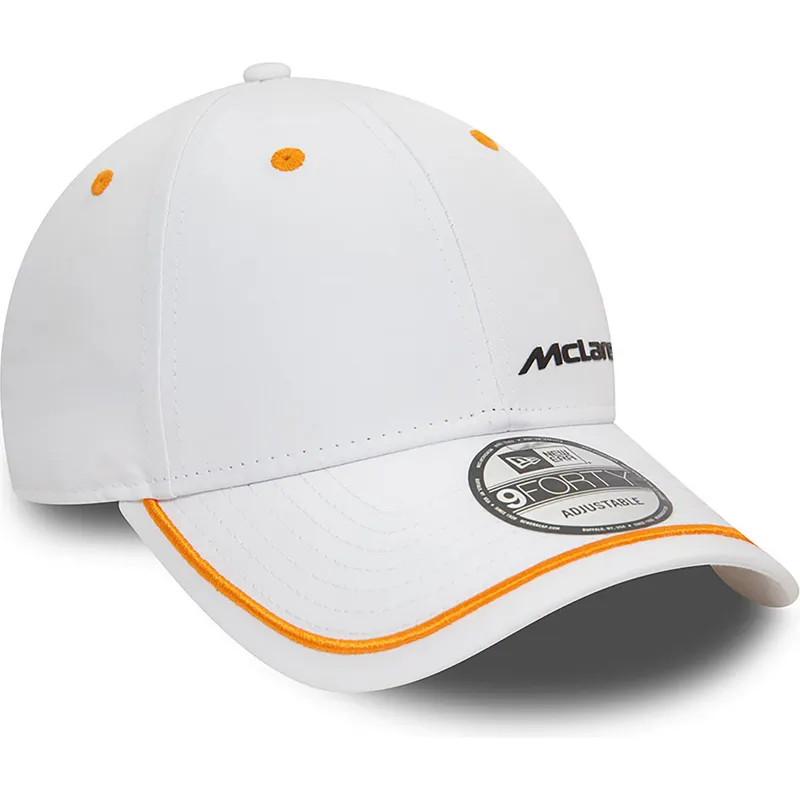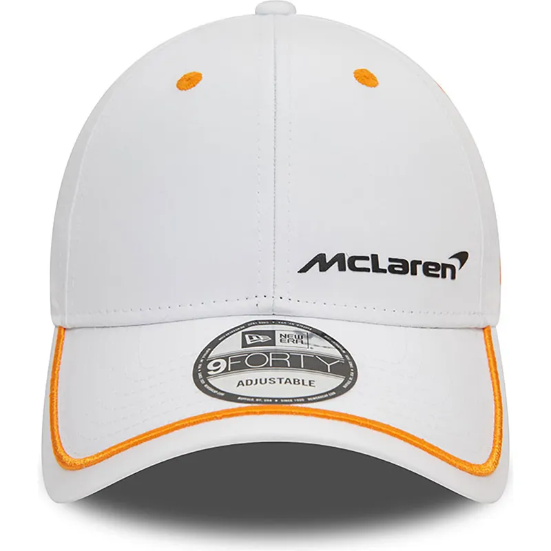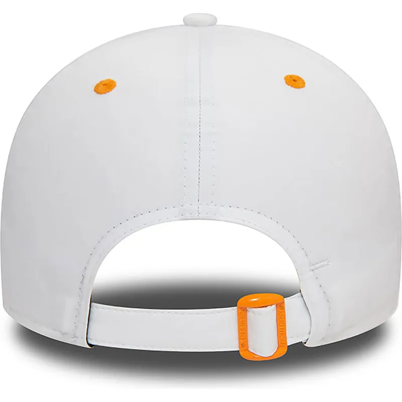 Regulowana biała zakrzywiona czapka McLaren Racing Formula 1 9FORTY Contrast Piping marki New Era to idealny dodatek dla fanów Formuły 1, którzy chcą pochwalić się jednocześnie sportowym i eleganckim stylem. Ta czapka o konstrukcji unisex ma regulowane zapięcie na pasek, które zapewnia wygodne i bezpieczne dopasowanie dla każdej osoby dorosłej, która ją nosi. Ponadto kontrast kolorów w szczegółach czapki nadaje jej nowoczesny i efektowny wygląd, który wyróżnia ją na tle innych.