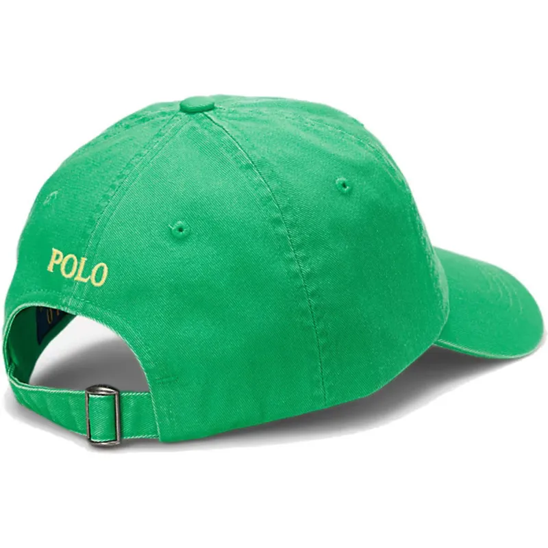 Zielona czapka z zakrzywionym daszkiem, regulowana, z żółtym logo, Cotton Chino Classic Sport od Polo Ralph Lauren