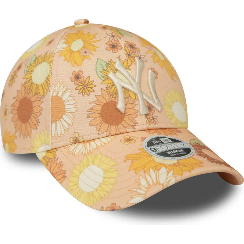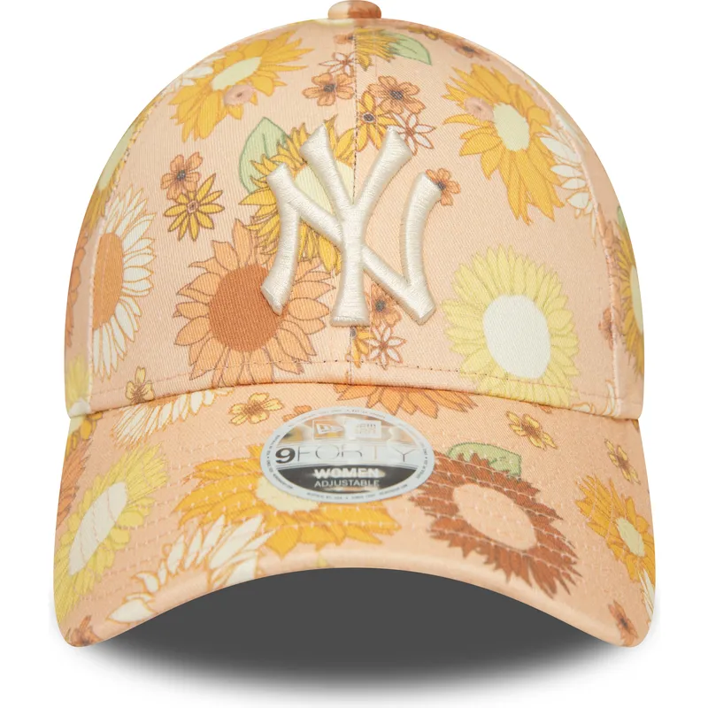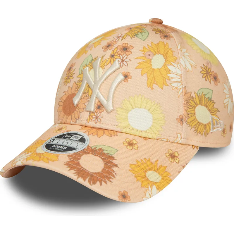 Pomarańczowa czapka z daszkiem regulowana dla kobiet 9FORTY Floral All Over Print New York Yankees MLB od New Era