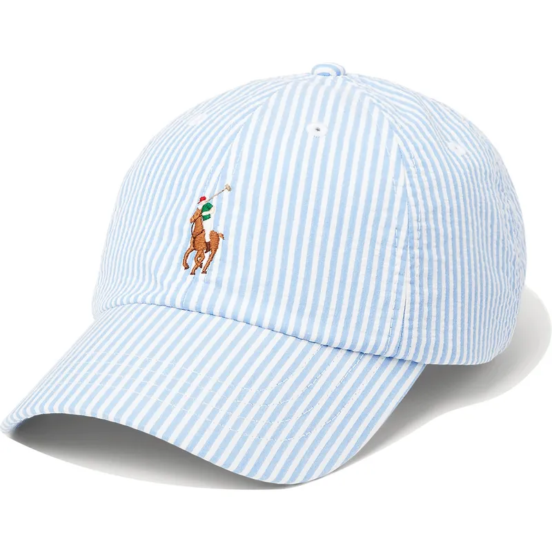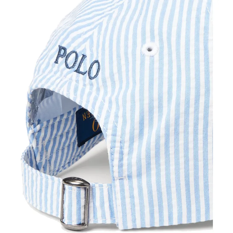 Regulowana niebiesko-biała czapka z daszkiem z bawełnianej tkaniny seersucker Polo Ralph Lauren