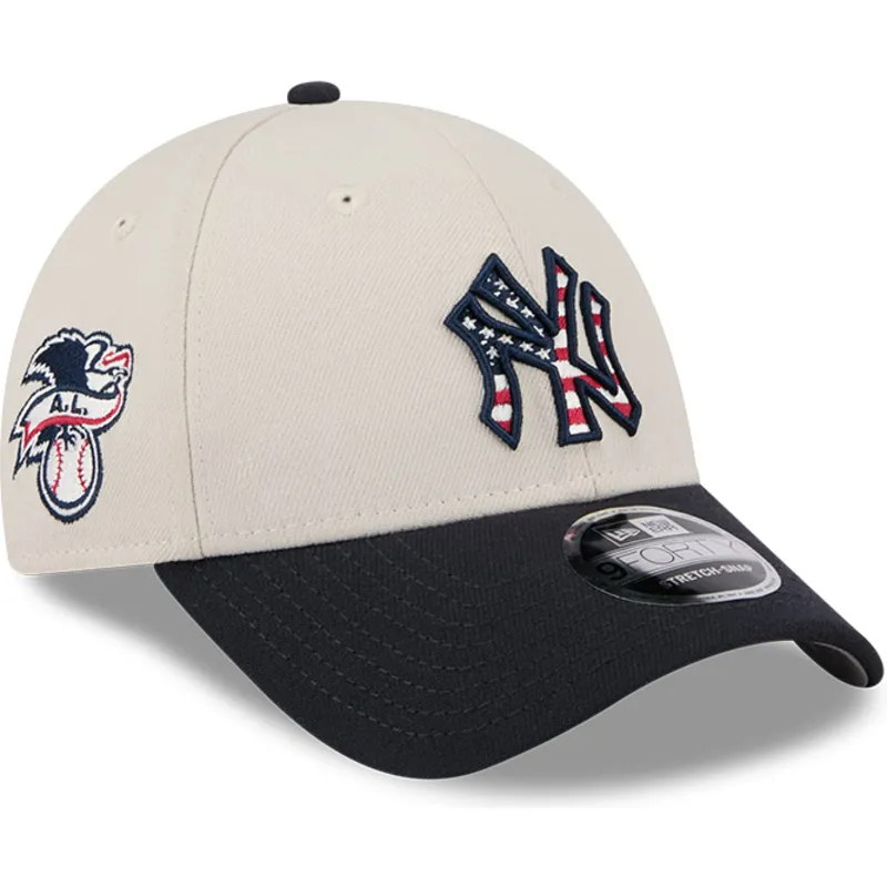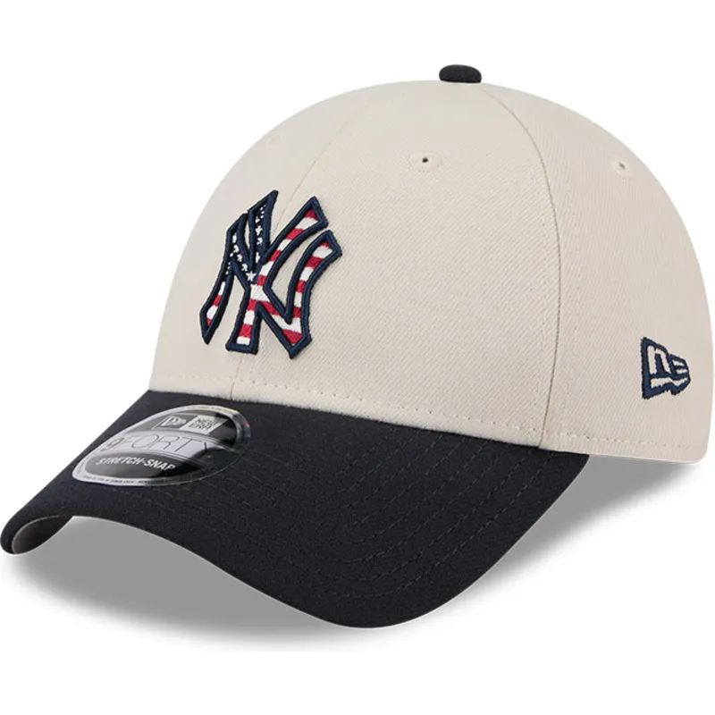 Czapka New York Yankees MLB 9FORTY Stretch Snap 4th of July Curved Beige and Navy marki New Era pozwoli Ci pokazać swoją pasję do drużyny Yankees zawsze i wszędzie. Niezależnie od tego, czy kibicujesz na stadionie, czy na ulicy, okazując swoją lojalność, ta czapka będzie idealnym uzupełnieniem każdego stroju. Zapięcie na zatrzask gwarantuje wygodę i dopasowanie, dzięki czemu możesz nosić tę czapkę przez cały dzień bez żadnego dyskomfortu.