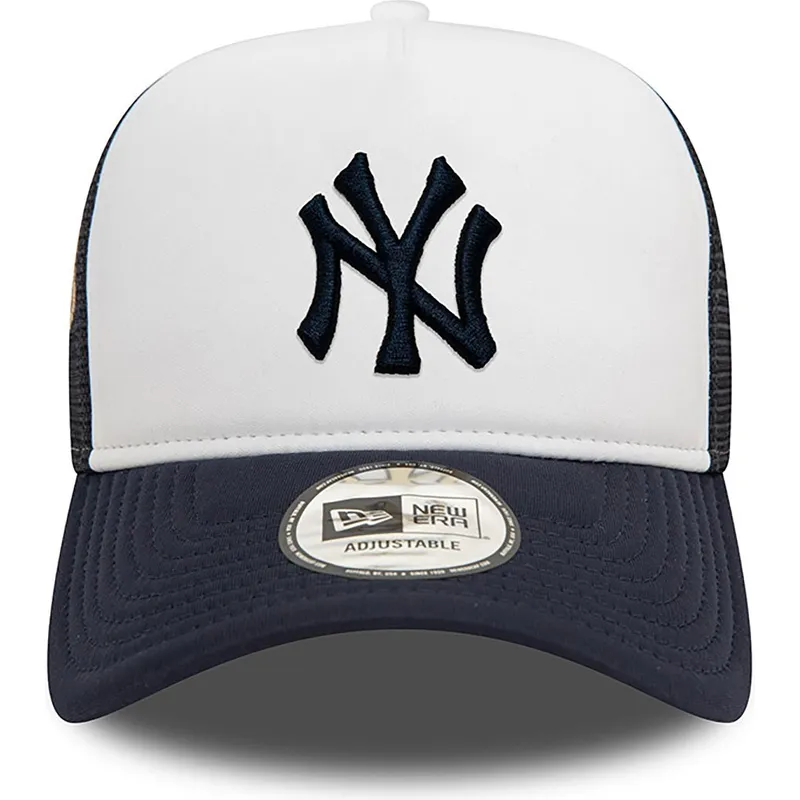 Biało-granatowa czapka typu trucker A Frame World Series New York Yankees MLB marki New Era to symbol lojalności i dumy najbardziej zagorzałych fanów tej drużyny MLB. Wykonana z wysokiej jakości materiałów czapka zapewnia trwałość i wytrzymałość, dzięki czemu jest długoterminową inwestycją dla fanów, którzy chcą okazywać swoje wsparcie drużynie Yankees sezon po sezonie. Model w kolorze biało-granatowym nadaje mu elegancki i wyrafinowany wygląd, który doskonale komponuje się z każdym codziennym strojem.