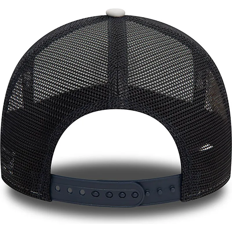 Biało-granatowa czapka typu trucker A Frame World Series New York Yankees MLB marki New Era to obowiązkowy element wyposażenia najbardziej zagorzałych fanów drużyny MLB. Czapka ta, z wyhaftowanym logo Yankees z przodu, jest symbolem pasji i oddania dla tych, którzy żyją i oddychają baseballem. Wzór w kolorze białym i granatowym nadaje mu nowoczesny i atrakcyjny wygląd, idealny do uzupełnienia każdego casualowego stroju o sportowym charakterze. Zapięcie na zatrzask zapewnia indywidualne, wygodne dopasowanie dla dorosłych, którzy chcą stylowo pokazać swoją miłość do drużyny Yankees.