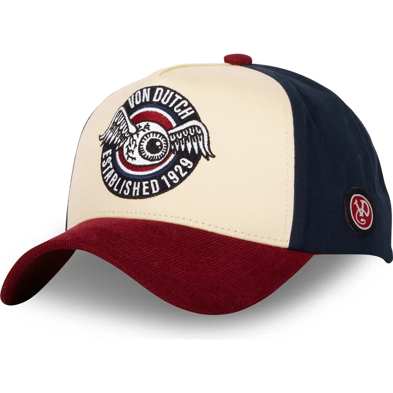 Snapback beżowo-niebiesko-czerwona czapka z daszkiem VINT02 od Von Dutch