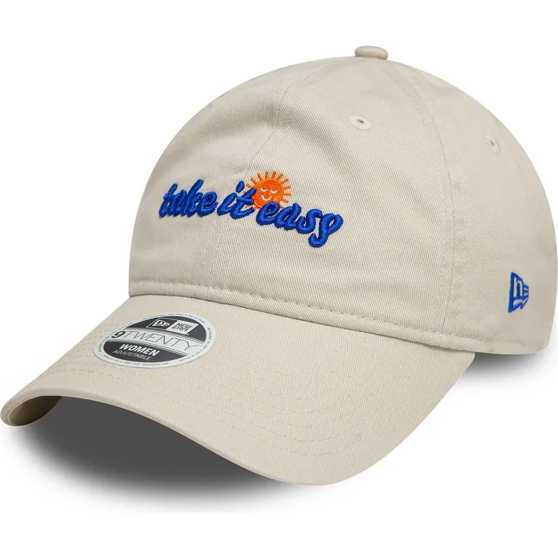 Czapka z daszkiem New Era Take It Easy Women's 9TWENTY Adjustable Curved w kolorze beżowym to niezbędny dodatek dla wszystkich kobiet, które chcą wyglądać modnie i jednocześnie chronić się przed słońcem. Niezależnie od tego, czy wybierasz się pobiegać, na zakupy, czy po prostu na spacer po mieście, ta czapka będzie Ci towarzyszyć podczas wszystkich codziennych czynności.