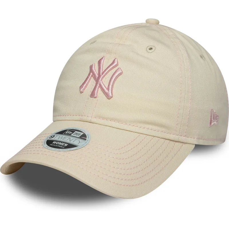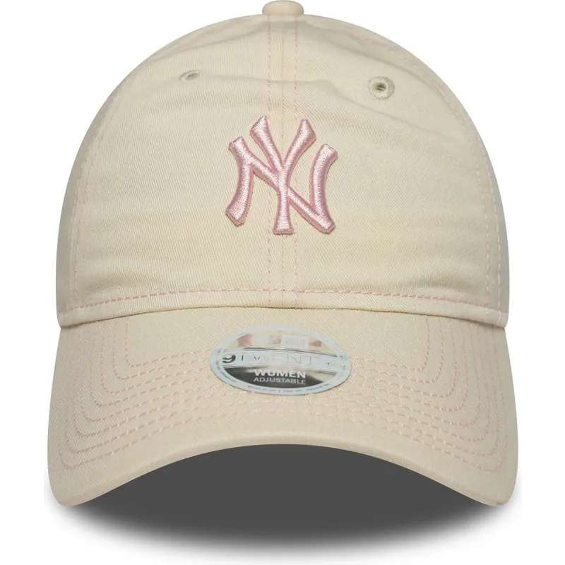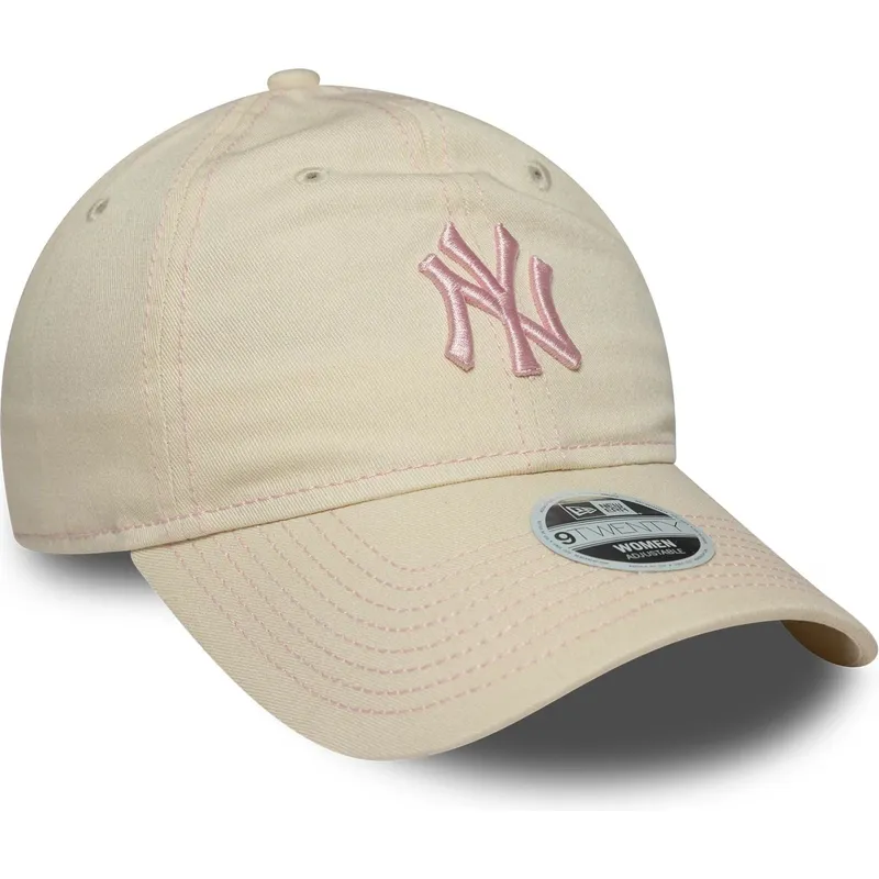 Beżowa, regulowana czapka z zakrzywionym daszkiem dla kobiet z różowym logo 9TWENTY Contrast Stitch New York Yankees MLB od New