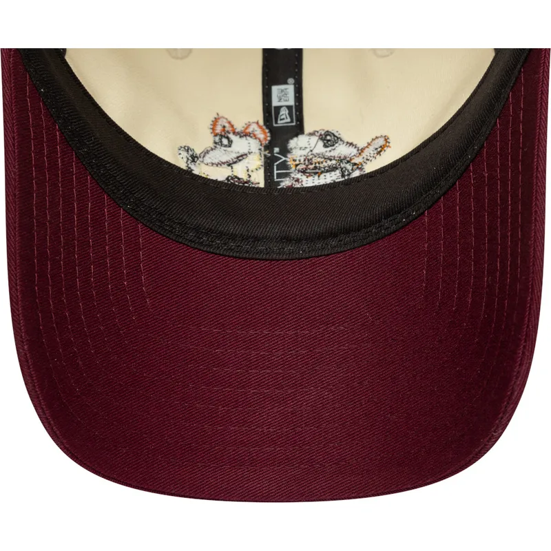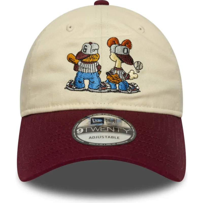 Projekt czapki zawiera kultowe wizerunki Garfielda i Odiego, co czyni ją niezbędnym dodatkiem dla fanów tych uwielbianych animowanych maskotek. Beżowo-bordowe połączenie kolorów nie tylko podkreśla charakter postaci, ale także ułatwia dopasowanie czapki do różnych stylizacji, od sportowych po codzienne, swobodne stylizacje. Marka New Era idealnie połączyła radosnego ducha Garfielda i Odiego ze współczesną estetyką, tworząc atrakcyjny i funkcjonalny produkt.