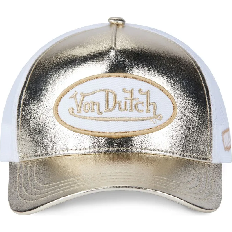 Złota czapka Von Dutch REG G typu trucker to must-have dla tych, którzy szukają połączenia stylu i funkcjonalności w jednym dodatku. Ta czapka, zaprojektowana dla dorosłych, wyróżnia się unisexowym designem, który pozwala każdemu nosić ją z pełnym komfortem i pewnością siebie. Charakterystyczny dla tego modelu fason trucker zapewnia optymalną wentylację dzięki siateczkowemu tyłowi, co czyni ją idealnym wyborem na słoneczne dni lub jako uzupełnienie casualowej stylizacji świeżym i nowoczesnym akcentem. Von Dutch, znana marka w świecie mody miejskiej, osiągnęła idealną równowagę między tradycją a trendem, dzięki czemu każdy detal jest wyrazisty i dopracowany.