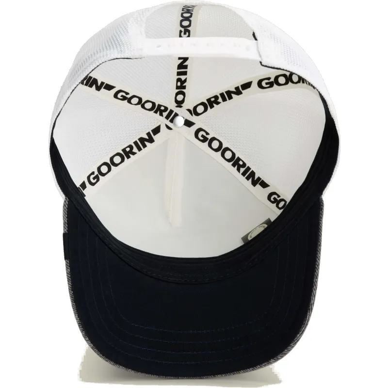 Czapka trucker biała i szara z rottweilerem Bad Boy Denim The Farm od Goorin Bros.