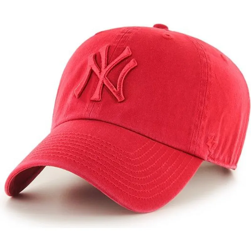 Czerwona czapka z zakrzywionym daszkiem z czerwonym logo New York Yankees MLB Clean Up od 47 Brand