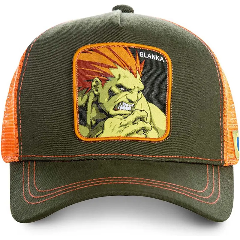 Czapka trucker zielono-pomarańczowa Blanka BLA Street Fighter od Capslab