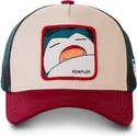 Czapka trucker beżowa, niebieska i czerwona Snorlax SNO2 Pokémon od Capslab