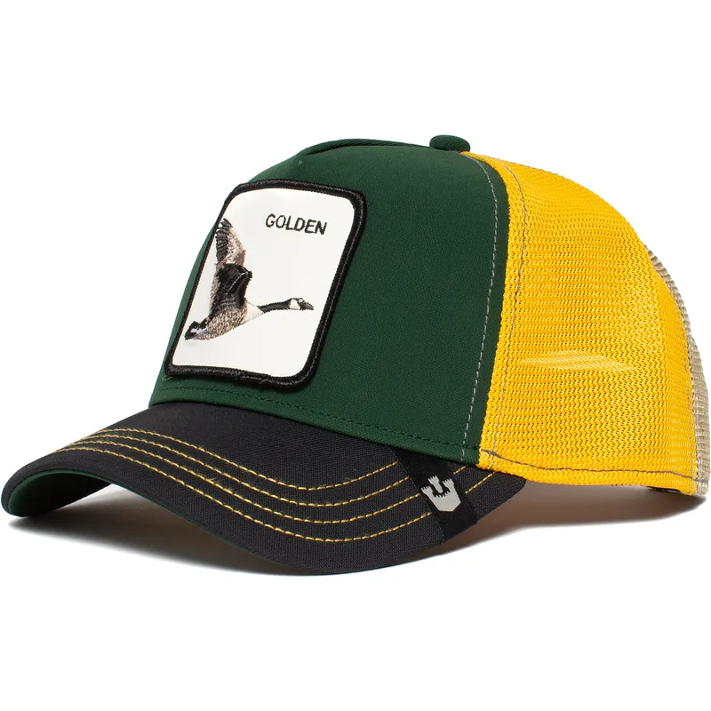 Czapka trucker zielona, czarna i żółta ganso Golden Goose od Goorin Bros.