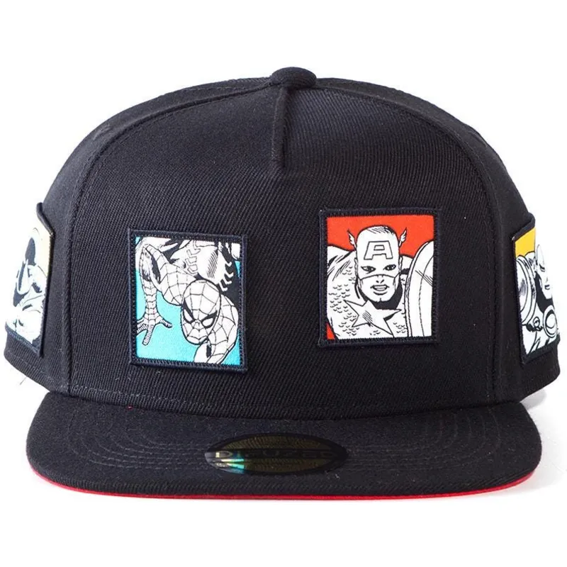 Czarna płaska czapka snapback Retro Avengers Marvel Comics od Difuzed
