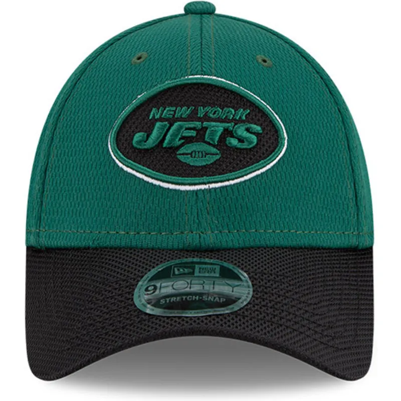 Czapka z zakrzywionym daszkiem zielono-czarna snapback 9FORTY Stretch Snap Sideline Road New York Jets NFL od New Era