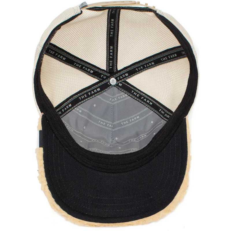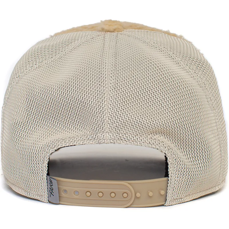 Beżowa czapka trucker The Teddy First Best Friend The Farm z owczej skóry to wysokiej jakości czapka, która Cię nie zawiedzie. Shearling jest miękki i wygodny, a krój unisex zapewnia, że zarówno mężczyźni, jak i kobiety mogą go nosić ze stylem. Zapięcie typu snapback jest bardzo praktyczne, ponieważ dopasowuje się do każdego rozmiaru głowy.
